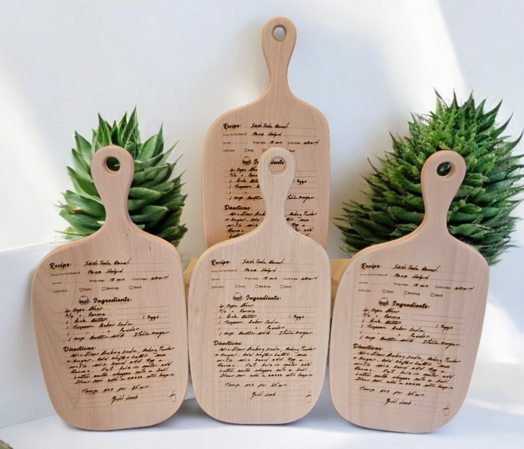 - Recipe Cutting Boards: Engrave a handwritten family recipe, a favorite cocktail, or a special menu onto a durable cutting board.